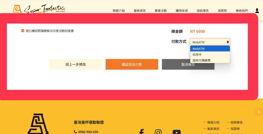 第10步.確認資料無誤後選擇付款方式,並按下確認並付款(按下後會跳轉至付款頁面)
