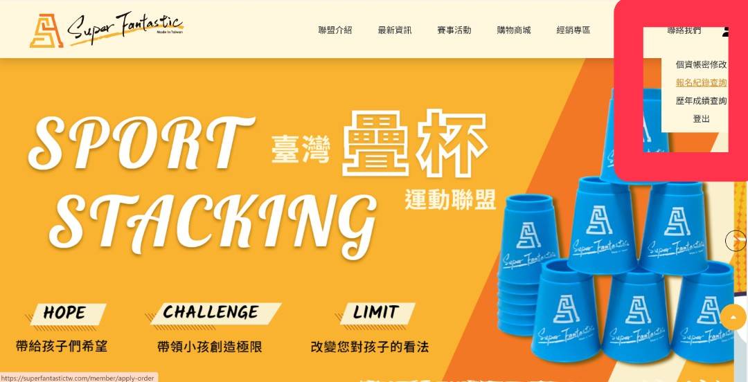 第11步.完成報名後可點選右側疊杯人,點選報名紀錄查詢,顯示報名成功及完成報名