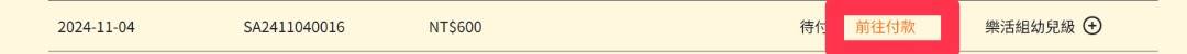 第12步.若未在當下完成繳費者,可以進入報名紀錄查詢後點選前往付款即可